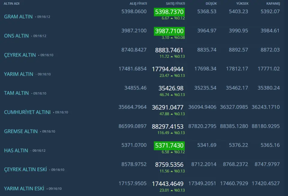 Gram Çeyrek Altın Kapalıçarşı Fiyatları 6 Kasım Perşembe