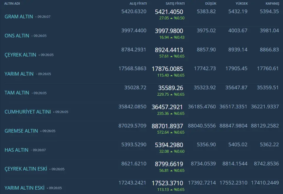 Gram Çeyrek Altın Kapalıçarşı Fiyatları 7 Kasım