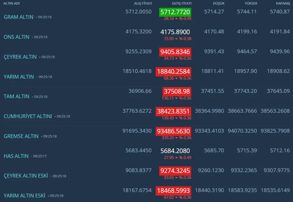 Gram Çeyrek Altın Kapalıçarşı Fiyatları 9 Aralık Salı
