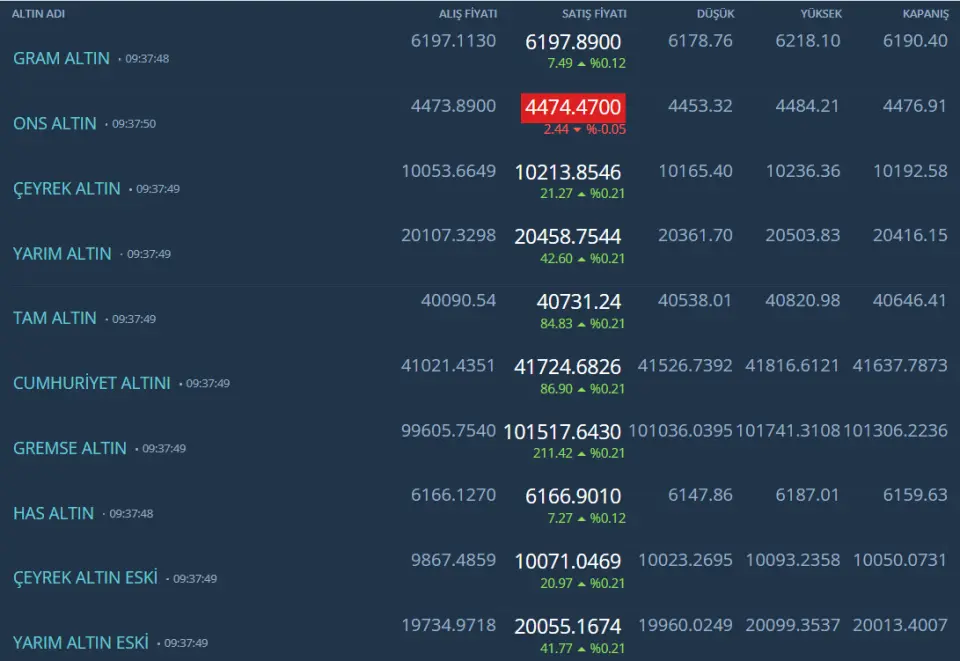 Gram Çeyrek Altın Kapalıçarşı Fiyatları 9 Ocak