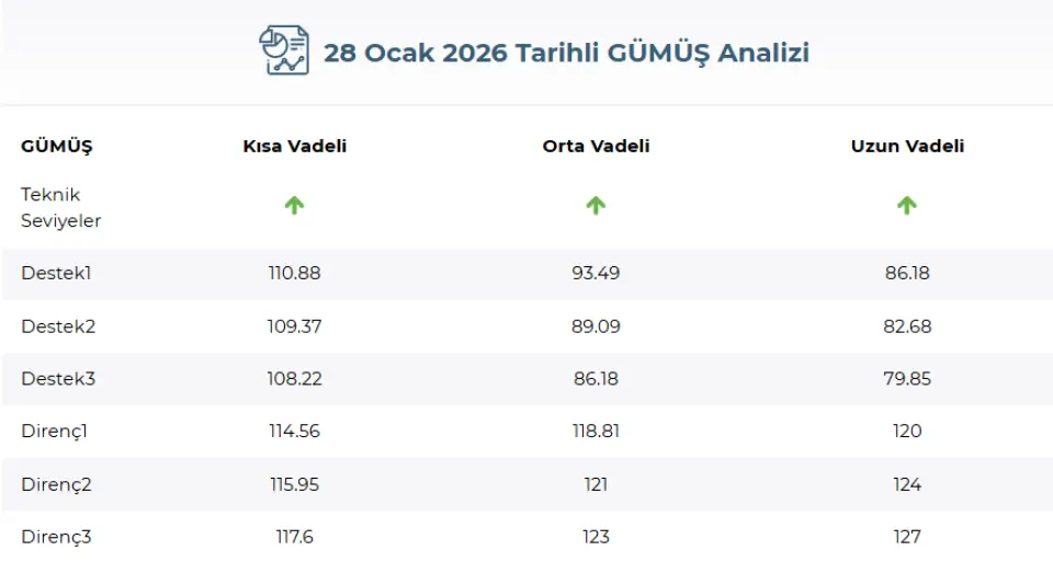 GCM Yatırım'ın 28 Ocak tarihli gümüş analizine göre:
