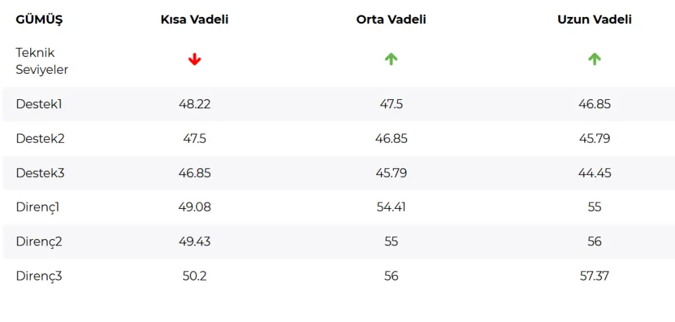 Gümüş fiyatları tutunmaya çalışsa da, 35 periyotluk üstel Envelopes ve 50,20–50,62 bölgesinin altında kalarak kısa vadeli görünümünü negatife çevirdi. Ayrıca 49,08–49,43 bandının da aşağı kırılması, bu bölgeyi artık olası bir direnç alanı haline getirmiş durumda. Ana senaryoda 48,22 seviyesi izleniyor olacak. Bu seviye, fiyatların sert şekilde toparlandığı nokta olması nedeniyle teknik açıdan önemini koruyor. 48,22’nin de kaybedilmesi halinde ise 47,50 seviyesinden gelebilecek tepkiler takip edilecek. Alternatif senaryoda, fiyatların Envelopes(35) üzerine taşınıp burada kalıcılık göstermesi durumunda kısa vadeli yön yeniden pozitife dönebilir.