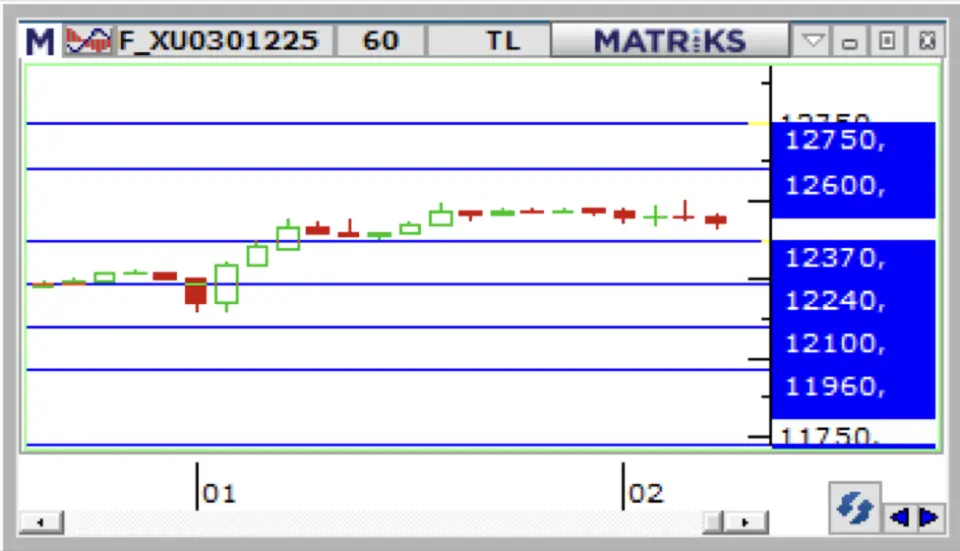 Güne yatay bir açılışla başlayan aralık vadeli endeks sözleşmesinde dün yaşanan güçlü yükselişlerin ardından yeni günde dalgalı ve kararsız bir fiyatlama takip ediliyor. Günün ilk yarısında 12.413,00 - 12.501,00 seviyeleri arasında hareket eden sözleşme, 12:55 itibariyle %0,20 oranında sınırlı bir düşüşle 12.430 seviyelerinden işlem görüyor.