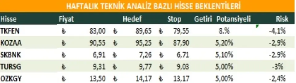 TKFEN, KOZAA, SKBNK, TURSG, OZKYG Haftalık Teknik Analiz Bazlı Hisse Önerileri!