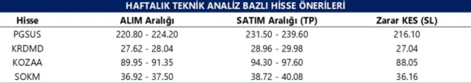 Haftalık Hisse Beklentilerinde PGSUS, KRDMD, KOZAA ve SOKM Dikkat Çekti!