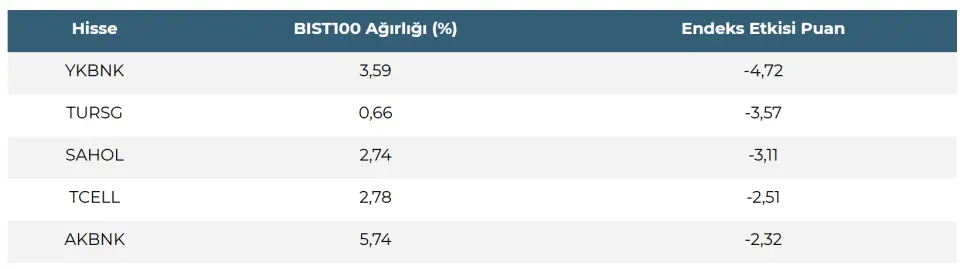 Haftanın ikinci işlem gününde BIST100 endeksi güne %0,19 artışla, 11.172,63 seviyesinden başladı. Günün ikinci yarısına doğru yaklaşırken endekste negatif seyir izleniyor. Toparlanma çabası halinde 11.250 bölgesinde sergilenecek performans dikkatle takip edilmelidir. Baskının daha da artması durumunda 55 günlük ortalamanın yer aldığı 11.045 seviyesine doğru fiyat hareketleri gündemi meşgul edebilir. Yukarı yönlü hareketlerde ise TL bazlı zirve olan 11.605 seviyesi takip edilebilir. Endeks etkisi açısından bakıldığında YKBNK ve TURSG’nin negatif fiyatlamayla endekste baskı oluşturan tarafta yer aldığı görülmektedir.