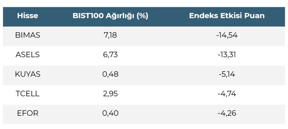 Haftanın son işlem gününde BIST100 endeksi güne %0,22 azalışla 10.604,89 seviyesinden başladı. Günün ilk yarısında endekste negatif seyir izleniyor. Negatif hareketin devam etmesi durumunda 10.550 seviyesi izlenirken altında fiyatlamalar 200 günlük ortalama (10.320) seviyesine doğru baskıyı devam ettirebilir. Tam tersi yukarı yönlü hareketlerde 10.780 seviyesi güçlü direnç konumunda yer almaktadır. Endeks etkisi açısından bakıldığında BIMAS ve ASELS’ın negatif fiyatlamayla endekste baskı oluşturan tarafta yer aldığı görülmektedir.Son dakika önemli diyorsanız… Sadece çok özel haberler anında ve hızlıca benim telefonuma, Whatsapp'a gelsin diyorsanız tıklayın ve kaydolun...