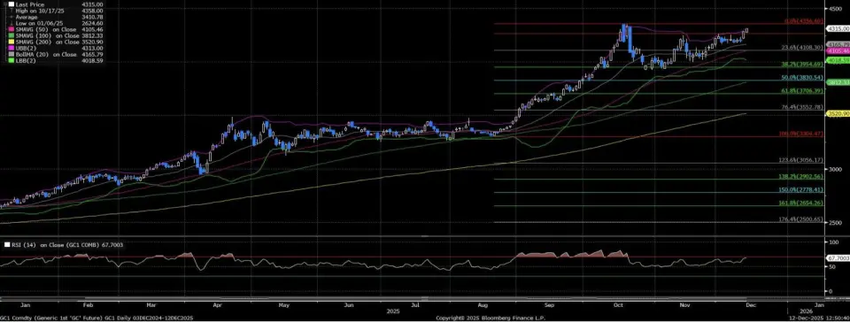 Altın, ABD’de ek parasal gevşeme beklentilerinin güçlenmesiyle ons başına 4.300 doların üzerine çıkarak ekim ayındaki rekor seviyeleri test etti ve haftayı yükselişle kapatmaya yöneldi. Zayıflayan istihdam verileri ve Fed’in yıl içindeki üçüncü faiz indirimi sonrası sergilediği güvercin duruş, 2026’da iki faiz indirimi beklentilerini güçlendirdi. Fed’in kısa vadeli tahvil alımlarına başlayacağını açıklaması da kısa vadeli faizleri baskılayarak değerli metalleri destekledi.