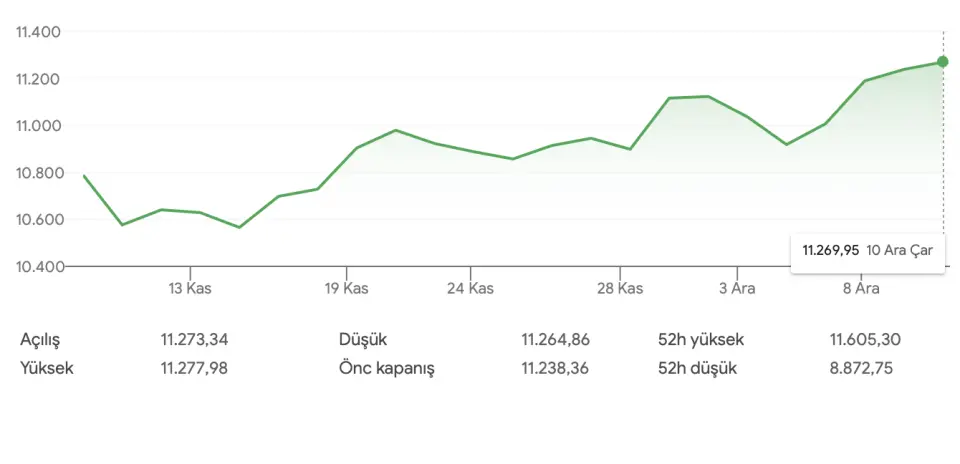 Güne Borsa İstanbul'da BIST 100 endeksi, yüzde 0,31 artış ile 11.273,34 puandan başlangıç yaptı. Önceki gün alış ağırlıklı bir seyrin hakim olduğu Borsa İstanbul'da BIST 100 endeksi, günü yüzde 0,44 değer kazanımı ile 11.238,36 puandan noktalamıştı.