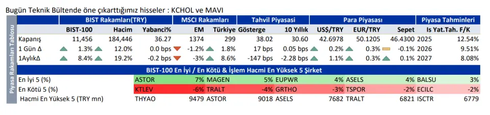 Kasım ayı ortasında bankacılık sektörü hisselerindeki alışlar ile başlayan yükseliş ara ara yaşanan geri çekilmelere rağmen genele yayılarak devam ediyor. Dünkü işlemlerde özellikle son dönemde geride kalan holding, perakende, otomotive ve havacılık hisselerindeki alımlar dikkat çekti. XBANK endeksi 14 Mart’tan bu yana TL bazında en yüksek kapanışını yaparken, BIST 100 dolar bazlı 200 günlük ortalamasının (261 dolar) üzerinde kalmaya devam ediyor. Yükselişin devamı halinde endeks Ekim başında test ettiği 270 dolar zirvesinde (11,530) dirençle karşılaşabilir. Geri çekilmelerde ise 11,300 seviyesi ilk destek noktası olarak çalışabilir. Kasım ayı ortasından bu yana düşüş trendinde olan TL bono faizlerinde son günlerdeki dipten dönüş hareketi dikkat çekiyor. Özellikle uzun vadeli faiz oranlarındaki gerileme bankacılık sektörü hisselerindeki artışı destekleyen faktörlerden biri olmuştu.