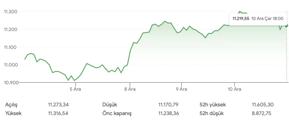 Borsa İstanbul'da 11 Aralık 2025'e giriş yapıldı. Merkez Bankası'nın Aralık ayı faiz kararının beklendiği günde BİST 100 endeksinde yaşanacak gelişmeler takip ediliyor.