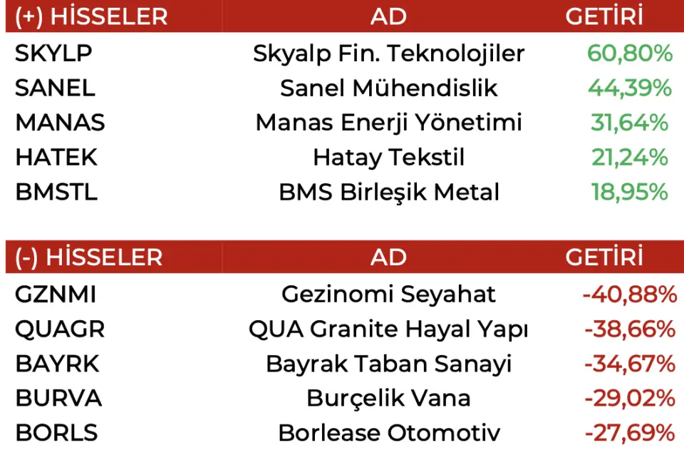 - "3 .çeyrek finansallarını tamamladık. 14 Ekim 2025 günü ilk finansal ile başlayan 2025 3.çeyrek finansal dönemini 10 Kasım 2025 gecesi tamamladık. Bilançoların toplam ortalama puanı 3,7 olarak gerçekleşirken 2.çeyreğe kıyasla 50, 2024 3.çeyreğe kıyasla 100 baz puan artış kaydetti. Bu durum toparlanmanın devam ettiğini gösteriyor. En iyi finansallar bakımından Agesa Hayat Emeklilik, Ecogreen Enerji, Halkbank, Vakıfbank, Yapı Kredi Bankası, Yünsa Yünlü, Sönmez Pamuklu, Gelecek Varlık Yönetimi, Katılımevim ve Menderes Tekstil takip edilirken olumsuzlar arasında Marmara Holding, Balsu Gıda, Akenerji, Kaplamin Ambalaj, Ulusal Faktoring, Denge Yatırım Holding, Dardanel, Smartiks Yazılım, CVK Maden ve Fuzul GMYO izlendi."