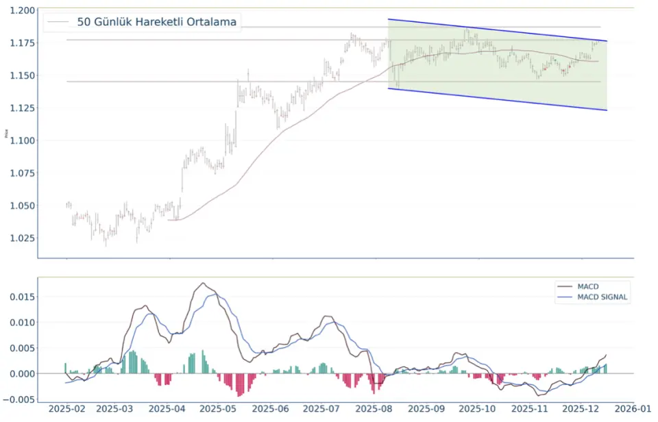EUR/USD, günlük periyotta %0.18 arttı. Haftalık bakıldığında %1.011 yukarıda ve aylık bakıldığında ise %1.455 yukarıda seyrederken güncel olarak 1,176 seviyesinden işlem görmekte. Teknik göstergelere bakıldığında MACD al pozisyonunda, pozitif bölgede hareket ediyor. Ayrıca RSI değerine göre aşırı alım bölgesinde olduğu gözleniyor. İşlem yaparken 1,2 ve 1,205 dirençleri ve 1,168 ve 1,152 destekleri izlenebilir.