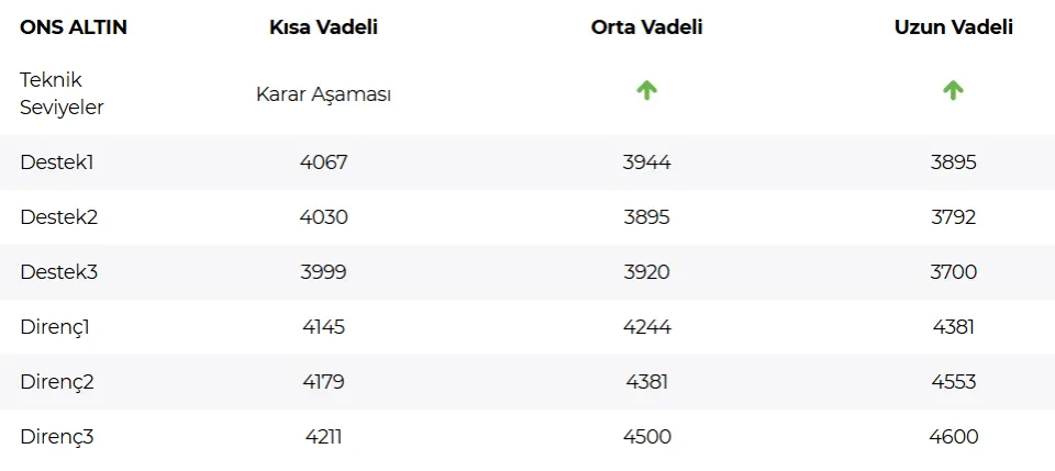 Ons Altın Yükselişte: 4067-4111 Bölgesi Yönü Belirleyecek