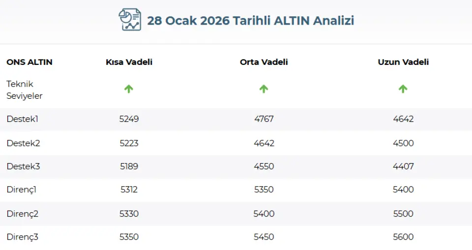 GCM Yatırım'ın 28 Ocak tarihli altın analizi aşağıdaki gibi oldu: