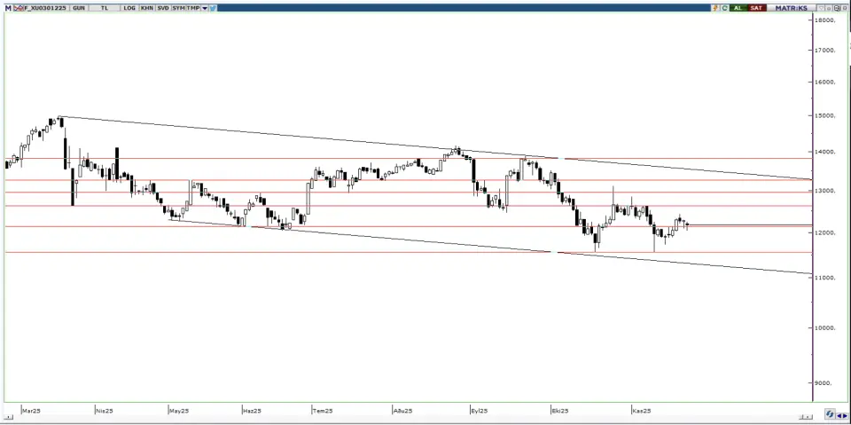 Hareketin devamı durumunda ise 13.260 seviyesi hedeflenebilir. Aşağı yönlü hareketlerde ilk etapta yatay destek olan 12.140 seviyesi takip edilebilir. Desteğin kırılması durumunda yatay destek olan 11.560 seviyesi izlenebilir. Hareketin devamı durumunda ise alçalan kanalın desteği olan 11.305 seviyesi hedeflenebilir.