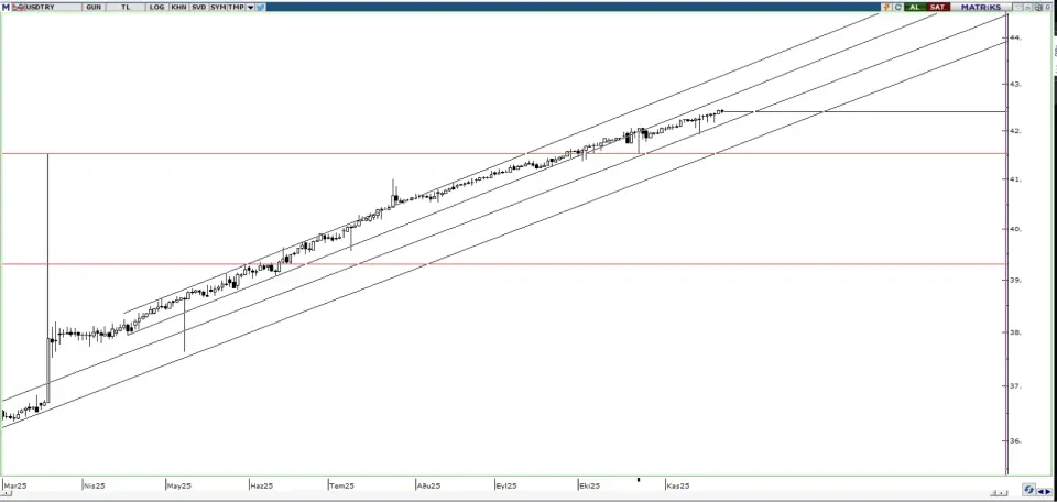 Aşağı yönlü hareketlerde ilk etapta uzun vadeli yükselen kanalın üst bant desteği olan 42.18 seviyesi takip edilebilir. Desteğin kırılması durumunda uzun vadeli yükselen kanalın alt bandı desteği olan 41,62 seviyesi izlenebilir. Hareketin devamı durumunda ise yatay destek olan 41,53 seviyesi izlenebilir.