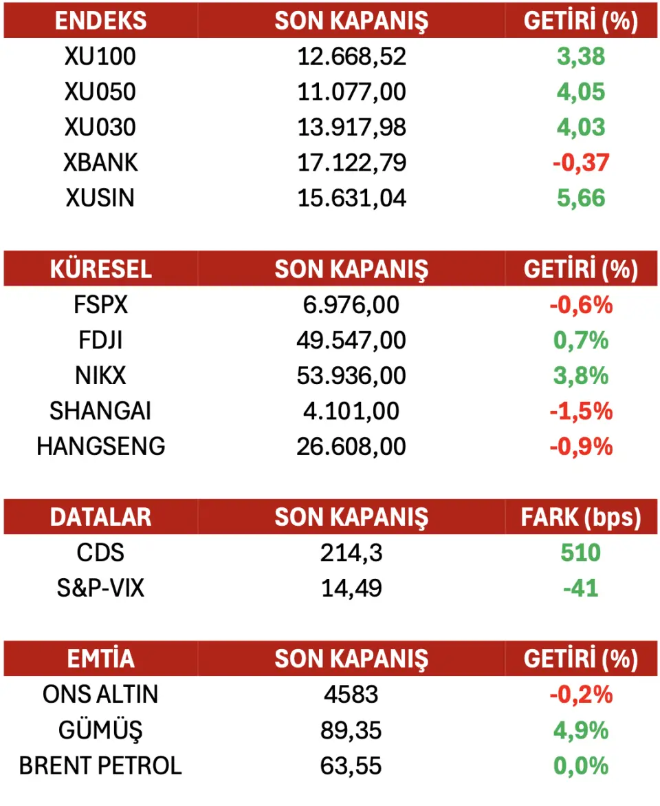 - "Küresel tarafta ana gündemi ise Trump’ın Grönland’a yönelik tutumu ve bu doğrultuda AB üyelerine ek %10 tarife getirmesi, AB üyelerini ise karşı tarife için görüşmelerini sürdürmesi eşliğinde artan jeopolitik tansiyon oluştursa da veri seti anlamında yoğun bir haftanın bizleri beklediğini görmekteyiz. Özellikle Almanya ZEW endeksi, EURO bölgesi TÜFE, AB’nin genelinde takip edeceğimiz PMI verileri ve son olarak ABD’den ise indirim politikasını şekillendiren ara veri setlerinden biri olan İşsizlik Haklarından Yararlanma Başvurularını izleyeceğiz. Özetle makro veri seti yoğun olsa da artan jeopolitik tansiyonun endeksler üzerinde risk iştahını daraltıcı seyir izleme ihtimalinin arttığını düşünmekteyiz."