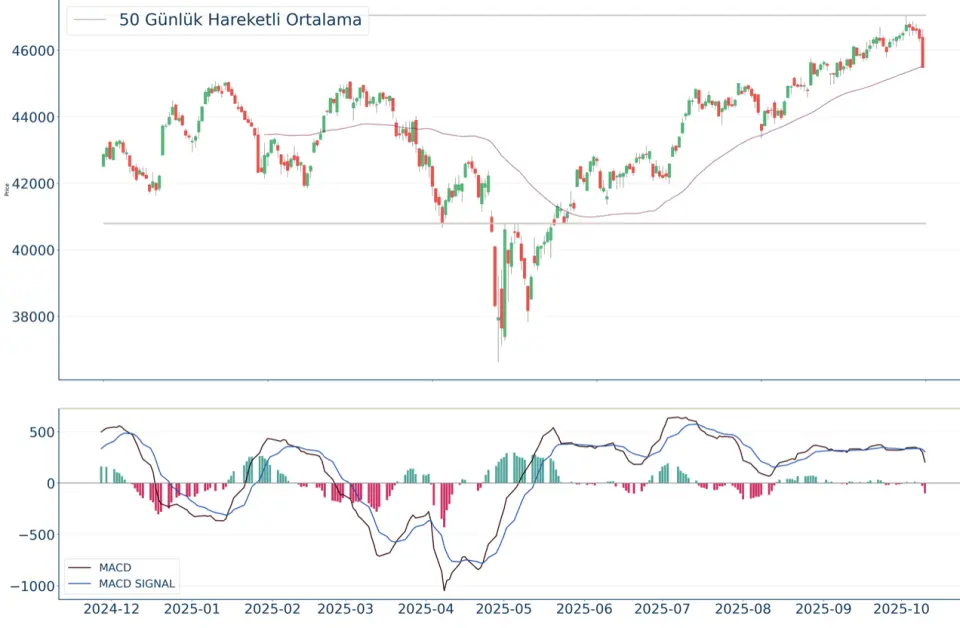 Daha da aşağı gelinmesi halinde 44.169 seviyesi destek olarak izlenebilir. 46.933-47.358 noktaları ise dirençlerdir.