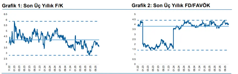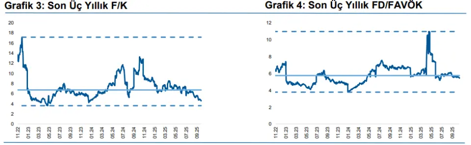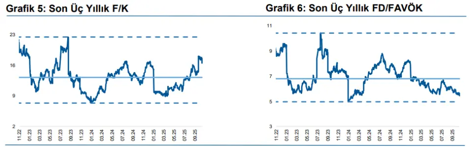 Tav Havalimanları’nı küresel benzerleri ile karşılaştırdığımızda, Bloomberg konsensus tahminlerine göre şirket 5,6x olan 2025T FD/FAVÖK çarpanına göre %44, 4,9x seviyesindeki 2026T FD/FAVÖK çarpanına göre ise %50 iskonto sunmaktadır. F/K çarpanları cephesinde de 16,9x olan 2025T F/K çarpanına göre %17, 7,4x seviyesindeki 2026T F/K çarpanına göre %61 iskontolu işlem görmektedir.