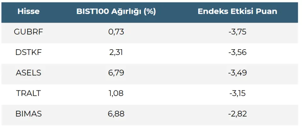 Haftanın son işlem gününde BIST100 endeksi güne %0,10 azalışla, 10.934,43 seviyesinden başladı. Günün ilk yarısında endekste negatif seyir izleniyor. Negatif fiyatlamanın devamı halinde 55 günlük ortalama (10.796) seviyesi güçlü bölge olarak izlenebilir. Olası yukarı yönlü hareketlerde 11.025 seviyesi önemini korumaktadır. Endeks etkisi açısından bakıldığında GUBRF ve DSTKF’nin negatif fiyatlamayla endekste baskı oluşturan tarafta yer aldığı görülmektedir.