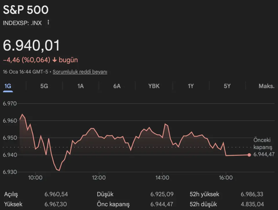 S&P 500 Endeksi, Güncel Olarak 6.940 Seviyesinden İşlem Görüyor!