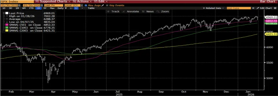 S&P 500 endeksi, son işlem gününü %0,13 azalarak 6969,01 puanda tamamladı. ABD Başkanı Trump’ın Fed Başkanlığı için adayını bugün açıkladı. Eski Fed yöneticilerinden Kevin Warsh’ın adı öne çıkıyordu. Beklenen doğrultuda ABD Başkanı Trump, Fed başkanlığına, eski Fed Yönetim Kurulu üyesi Kevin Warsh’ı aday gösterdi. Warsh’ın, kısmen daha sıkı para politikalarına yakın şahin bir isim olması nedeniyle de kıymetli madenlerde kar satışları görüyoruz. Bloomberg’de paylaşılan 12 aylık ortalama S&P 500 endeks hedefi 8.091 puan ile dolar bazında %16 yükseliş potansiyeline işaret ediyor. Teknik açıdan yakın vadede 7.120 puan direnç seviyesi, 6.745 puan ise destek seviyesi olarak takip edilebilir.