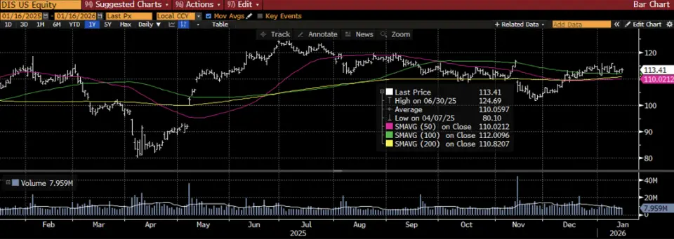 DIS, eğlence ve medya sektöründe faaliyet gösteren küresel bir şirkettir. Şirket; film ve dizi stüdyoları, televizyon ağlanı, dijital yayın platformları (Disney+, Hulu) ile tema parkları ve lisanslı ürünler aracılığıyla entegre bir iş modeline sahiptir. Hisse için Bloomberg'de yer alan analist beklentileri 12 aylık vadede ortalama 132,92 USD hedef fiyata ve son kapanış fiyatına göre %17,2 getiri potansiyeline işaret ediyor. S&P 500 endekisinin üzerinde bir getiri potansiyeline sahip olsa da, önümüzdeki dönemde hedef fiyatın yapılacak revizyonlarla endeks getirisinin üzerinde kalacağını öngörüyoruz. Hisse için 32 analist AL, 8 analist TUT tavsiyesi veriyor. Teknik açıdan yakın vadede 121 USD direnç, 109 USD ise destek seviyesi olarak takip edilebilir.