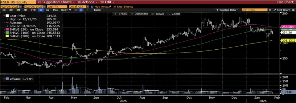 FSLR, ince film fotovoltaik (CdTe) teknolojisiyle güneş panelleri üreten ve kamu ölçekli güneş enerjisi santrallerine yönelik entegre çözümler sunan bir şirkettir. Şirket, üretim, proje geliştirme ve uzun vadeli tedarik anlaşmaları kapsamında küresel pazarlarda faaliyet göstermektedir. Hisse için Bloomberg'de yer alan analist beklentileri 12 aylık vadede ortalama 274,04 USD hedef fiyata ve son kapanış fiyatına göre %16,9 getiri potansiyeline işaret ediyor. S&P 500 endekisinin altında bir getiri potansiyeline sahip olsa da, önümüzdeki dönemde hedef fiyatın yapılacak revizyonlarla endeks getirisinin üzerinde kalacağını öngörüyoruz. Hisse için 30 analist AL, 11 analist TUT tavsiyesi veriyor. Teknik açıdan yakın vadede 264 USD direnç, 221 USD ise destek seviyesi olarak takip edilebilir.