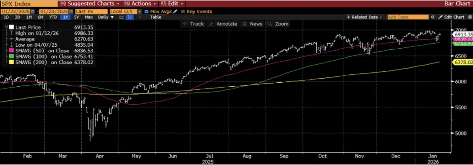 S&P 500 endeksi, son işlem gününü %0,03 artarak 6915,61 puanda yatay tamamladı. Küresel piyasalar yeni haftaya zayıf bir başlangıç yapıyor. Jeopolitik meselelere ek olarak, ABD’de yaklaşan kar fırtınası, hükümetin yeniden kapanma riskiyle karşı karşıya gelmesi ve Japonya’da ABD ile koordineli bir şekilde JPY’ye müdahale mesajları ve dolar/yen paritesindeki sert gerileme risk iştahını zayıflatıyor. Bloomberg’de paylaşılan 12 aylık ortalama S&P 500 endeks hedefi 8.067 puan ile dolar bazında %16,6 yükseliş potansiyeline işaret ediyor. Teknik açıdan yakın vadede 7.120 puan direnç seviyesi, 6.745 puan ise destek seviyesi olarak takip edilebilir.