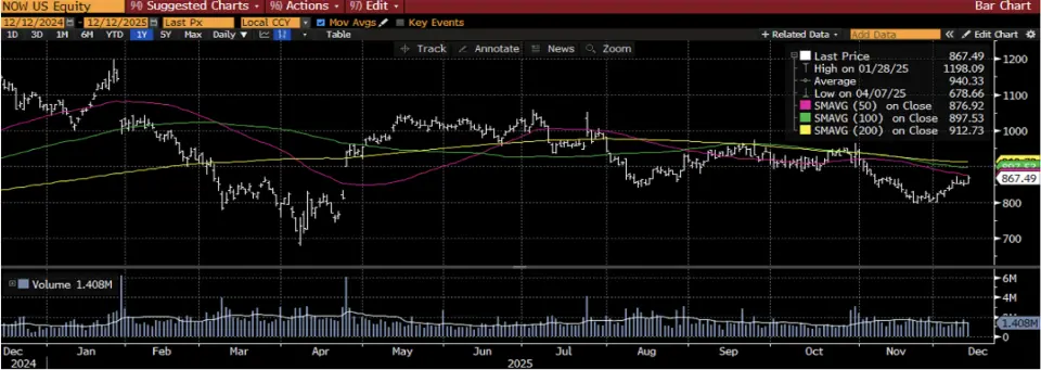 NOW, kurumsal iş akışlarını dijitalleştiren ve otomasyona taşıyan bulut tabanlı platform çözümleri sunan bir yazılım şirketidir. Şirket, ServiceNow platformu üzerinden BT hizmet yönetimi, operasyonel verimlilik ve müşteri/çalışan deneyimini iyileştirmeye yönelik entegre iş akışı uygulamaları sağlar. Hisse için Bloomberg’de yer alan analist beklentileri 12 aylık vadede ortalama 1149,37 USD hedef fiyata ve son kapanış fiyatına göre %32,5 getiri potansiyeline işaret ediyor.