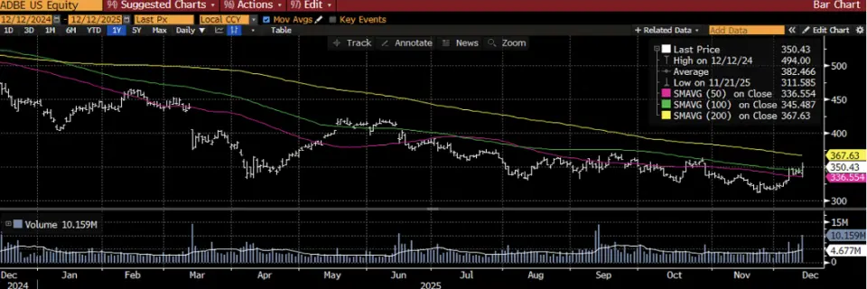 ADBE, dijital medya oluşturma, düzenleme ve yayınlama süreçlerine yönelik yazılımlar geliştiren küresel bir teknoloji şirketidir. Şirket, özellikle Creative Cloud ve Document Cloud ürün aileleriyle kreatif profesyonellere ve kurumsal müşterilere uçtan uca içerik üretimi ve belge yönetimi çözümleri sunar. Hisse için Bloomberg’de yer alan analist beklentileri 12 aylık vadede ortalama 443,93 USD hedef fiyata ve son kapanış fiyatına göre %26,7 getiri potansiyeline işaret ediyor.