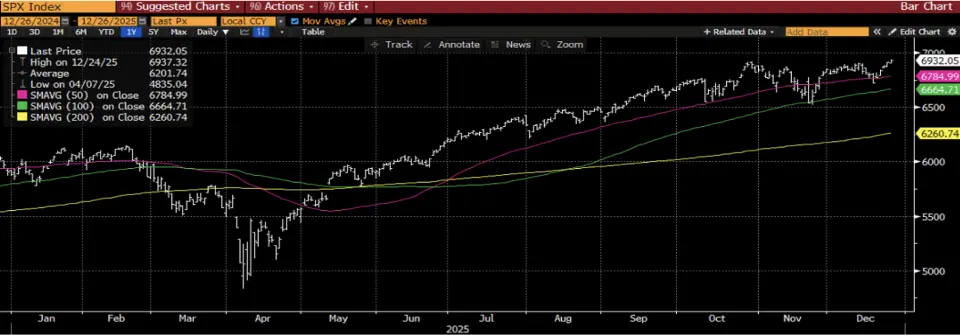S&P 500 endeksi, son işlem gününü %0,32 artarak 6932,05 puanda tamamladı. Küresel piyasalarda tatil kaynaklı etkiler sürüyor. ABD’de piyasalar dün kapalıydı; bugün federal tatil olmasına rağmen borsalar işlem görmeye devam etti. Bloomberg’de paylaşılan 12 aylık ortalama S&P 500 endeks hedefi 7.966 puan ile dolar bazında %14,9 yükseliş potansiyeline işaret ediyor. Teknik açıdan yakın vadede 6.975 puan direnç seviyesi, 6.600 puan ise destek seviyesi olarak takip edilebilir.