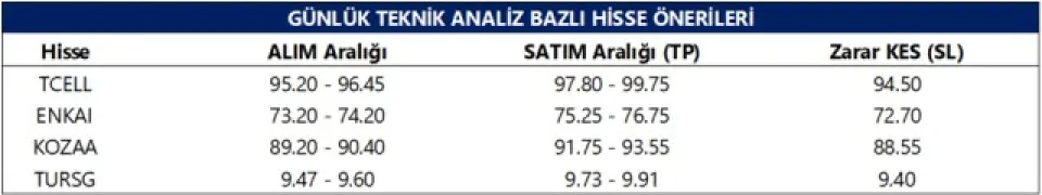 TCELL, ENKAI, KOZAA, TURSG Günün Hisseleri!