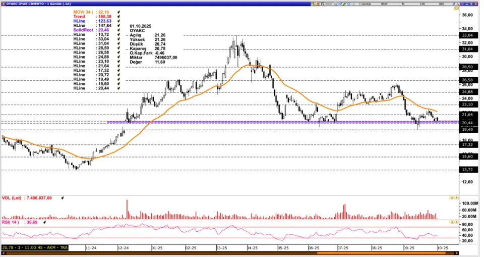 OYAKC: 20,44 – 20,72 bölgesinin destek görevi görmesiyle beraber OYAKC’ye yönelik iyimser beklentimiz ön planda yer almaktadır. Üçüncü çeyrek bilanço sezonunun da yaklaşmasıyla beraber sektöre yönelik beklentilerin fiyatlama üzerinde etkisi izlenebilir. Böyle bir durumda 34 periyotluk ortalama önemli bir eşik olmakla beraber ortalama üzerine geçilmesi yukarı yönlü hareket akışını hızlandırabilir. Olası baskılanmalarda ise 20,44 – 20,72 bölgesinde verilecek reaksiyon dikkatle izlenmelidir. Bölge altında kalıcı fiyat hareketleri izlenmesi 19,49 seviyesine doğru satış baskısını beraberinde getirebilir.