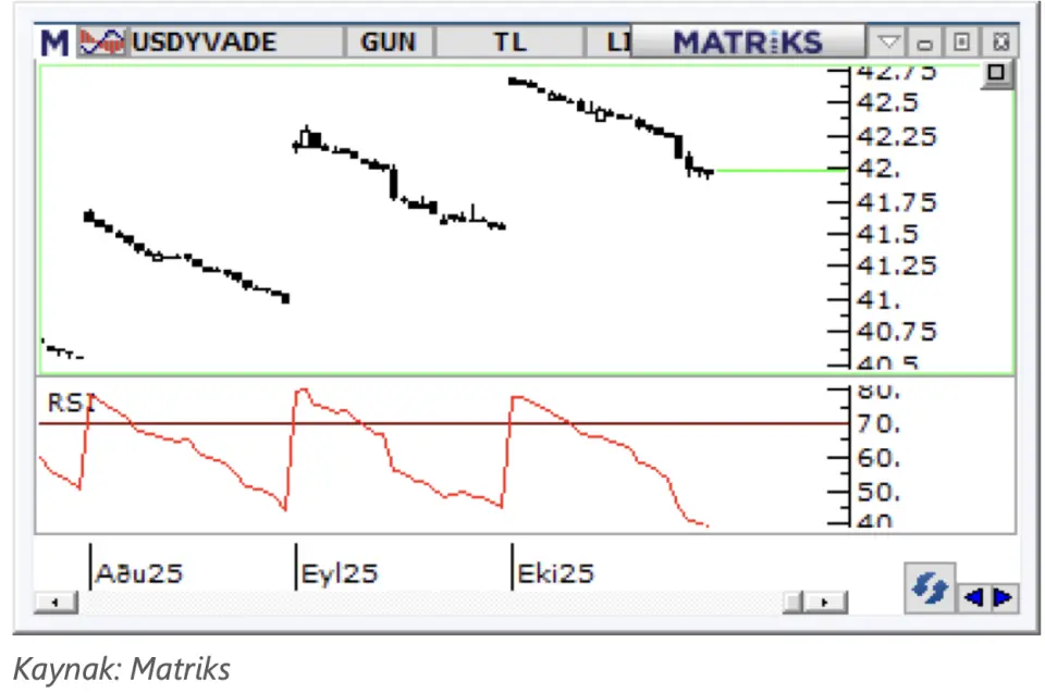 "Günü 41.975 seviyesinde noktalayan USD/TL vadeli işlem kontratlarında 41.933, 41.849, 41.765 ve 41.681 destek olarak takip edilebilir." 42.017, 42.101, 42.185 ve 42.269 ise direnç noktalarını oluşturuyor."