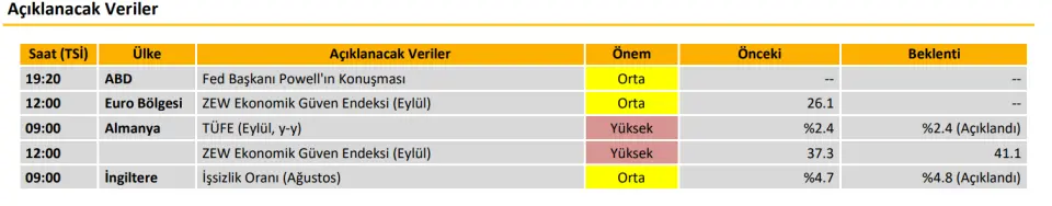 Günlük bazda %2.30 artışla 4,110 dolar/ons seviyesinden kapanış gerçekleştiren altın fiyatları, yeni günde 4,122 dolar/ons seviyelerinde alıcılı seyrediyor. ABD-Çin arasındaki anlaşmazlıkların yeniden artışıyla petrol fiyatları iki günlük düşüşünün ardından yükseliş kaydetti. Brent petrol günlük bazda %0.94 artışla 63.32 dolar/varil seviyesinden kapanış gerçekleştirdi. ABD ham petrolü ise günlük bazda %1 artış gösterdi.