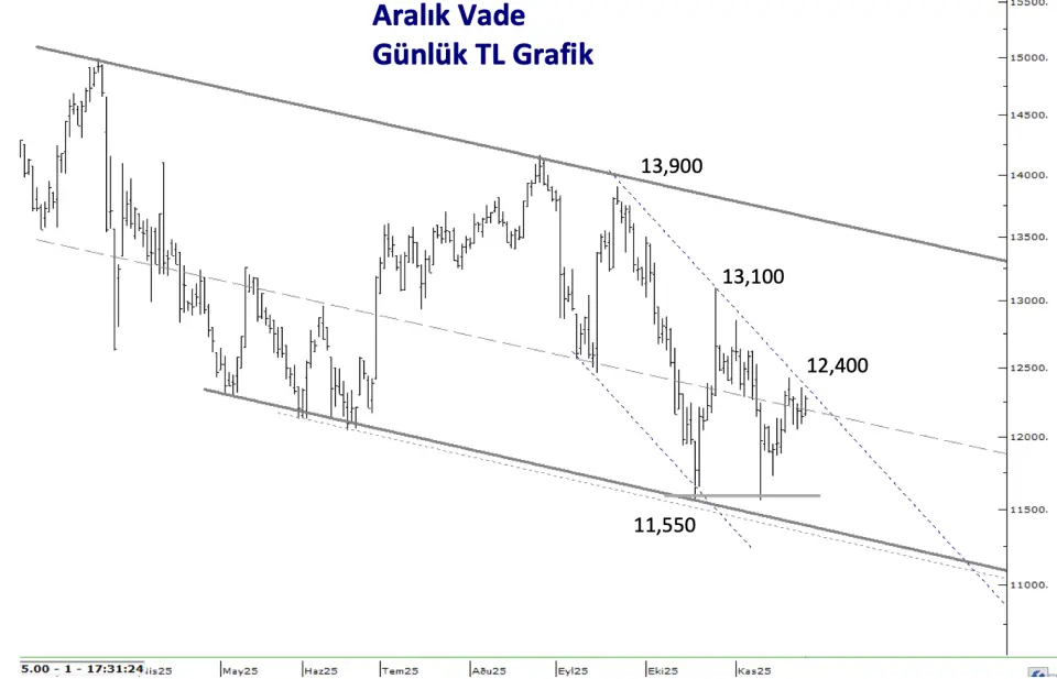 Aşağı yönde baktığımızda ise, 12,080-12,100 bölgesi altındaki kalıcı fiyatlamaları bir zayıflama sinyali olarak yorumlayacak ve piyasanın son dönemde yukarı yönde geliştirmeye çalıştığımı momentumu sonlandırma riskine sebep olabileceğini düşüneceğiz. Böyle bir ihtimalde, ilk etapta 11,950-12,000 aralığı, ardından da 11,750 seviyesi önemli destekler olarak öne çıkabilir.