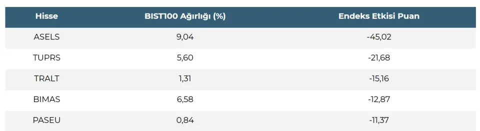 Haftanın son işlem gününde BIST100 endeksi güne %0,16 azalışla, 13.809,39 seviyesinden başladı. Günün ikinci yarısına doğru yaklaşırken endekste negatif fiyatlama izleniyor. Negatif hareketin devamında 13.695 seviyesi izlenirken kırılması halinde 13.500 seviyesine baskı devam edebilir. Olası yukarı yönlü hareketlerde ise 14.000 seviyesi direnç konumunda bulunmaktadır. Endeks etkisi açısından bakıldığında ASELS ve TUPRS’ın negatif fiyatlamayla endekste baskı yaratan tarafta yer aldığı görülmektedir.
