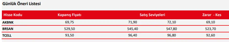 Ziraat Yatırım'dan Günlük Takip Listesi!