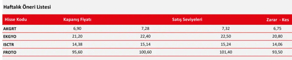 Ziraat Yatırım'dan Haftalık Takip Listesi!