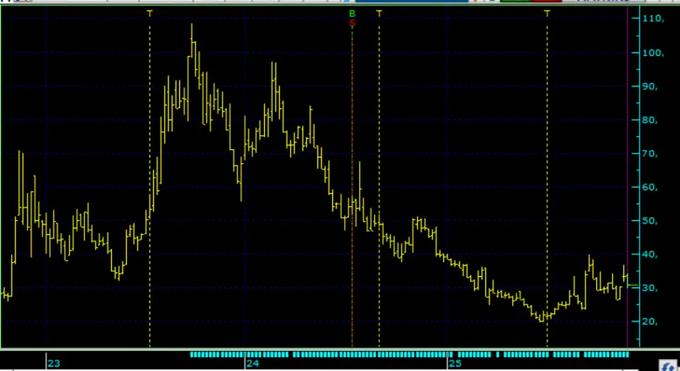 KONTR borsada uzun süreli bir düşen trendi devam ettiriyo. Hisse, 2023 yılı Eylül ayında, bölünmüş fiyatla 108 TL zirveden düşüşe geçti ve bir daha da toparlanamadı.