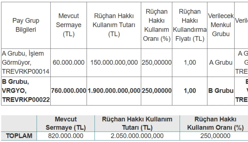VRGYO en son 2024 yılı Temmuz ayında %300 bedelsiz sermaye artırımı yapmıştı.