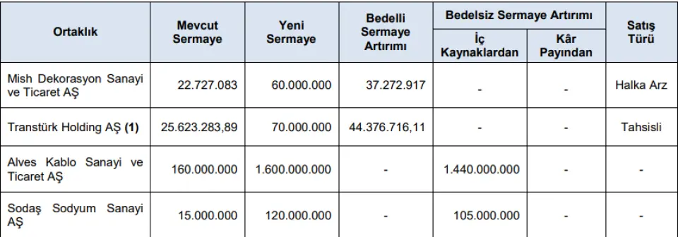 Sodaş Spdyum Sanayi SODSN %700 bedelsiz sermaye artırımı onaylandı. Şirketin yeni sermayesi 120 milyon TL olacak.
