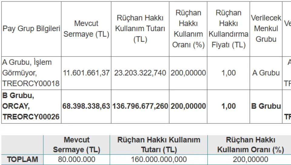 ORCAY %200 Bedelli Sermaye Artırımı Onaylandı Hisse Tavan Gördü