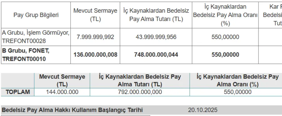 Şu anda hesabınızda FONET hissesi olmasa bile, yarın seans bitimine kadar hisseyi borsadan satın alan bütün yatırımcılar, bu bedelsiz sermaye artırımından yararlanabilir.