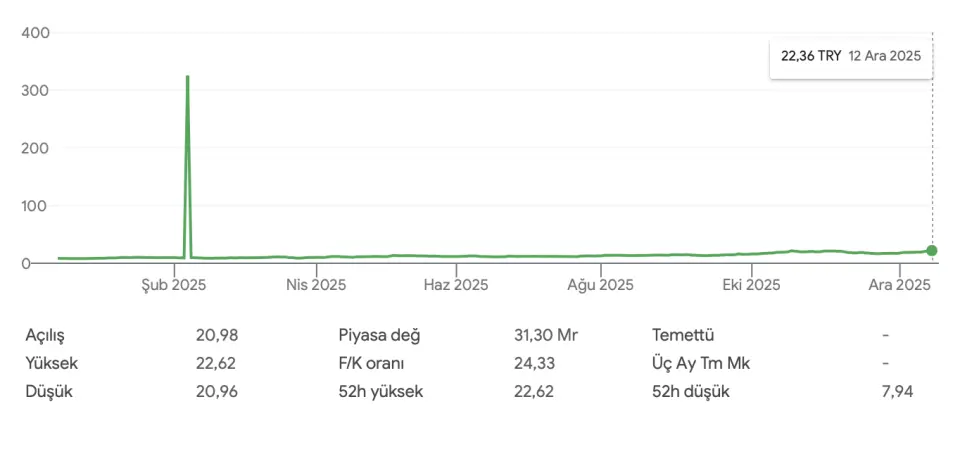 CVKMD hissesi, yılbaşından bu yana %155,84 değerlenirken, son 6 ayda ise %93,26 değer kazanmıştı. CVK MADEN İŞLETMELERİ SANAYİ VE TİCARET A.Ş. (CVKMD), bedelli sermaye artırımına ilişkin yönetim kurulu kararı aldığını duyurdu. CVK Maden İşletmeleri'nin kararına ilişkin açıklama Kamuyu Aydınlatma Platformu'nda (KAP) paylaşıldı. Şirketin resmi KAP açıklaması 13 Aralık 2025'te yayımlandı.