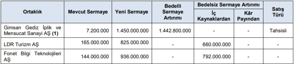 Gimsan Gediz İplik GEDİZ %200 tahsisli sermaye artırımı onaylandı. Şirketin yeni sermayesi 1.450.000.000 TL olacak.