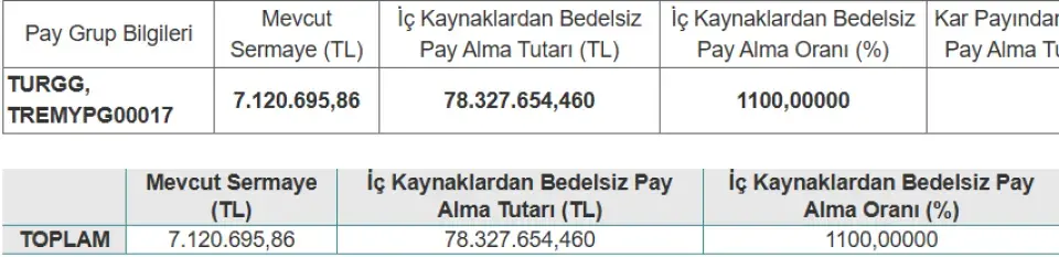 Türker Proje Gayrimenkul (TURGG), geçtiğimiz ay onaylanan sermaye artırımı neticesinde, şirket sermayesini 7,12 milyon TL’den, 128,17 milyon TL’ye çıkartacağını belirtmişti. Sermaye artırımının %1100’lük kısmının bedelsiz, %600’lük kısmının ise bedelli şeklinde yapılacağı aktarıldı. Bu kapsamda TURGG yatırımcısının 500 lotunun 6000 lota yükselecek.