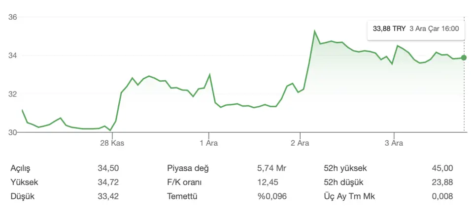 Son 1 yılda %8,58 değer kaybı yaşayan ARDYZ hissesi yılbaşından beri ise %14,57 değer kaybetti. Son 6 ayda ise yatırımcısına %24,56 kazandıran hisse, son 1 ayda ise %17,39 değerlendi. Açıkladığı yeni işler sonrası da ARDYZ, son 5 günde %8,66 değer kazandı. Bugün %0,78 değer kazanan hisse 33,78 TL'den işlem görüyor.Son dakika önemli diyorsanız… Sadece çok özel haberler anında ve hızlıca telefonunuza, WhatsApp’a gelsin diyorsanız… 👉 Tıklayın ve kaydolun!